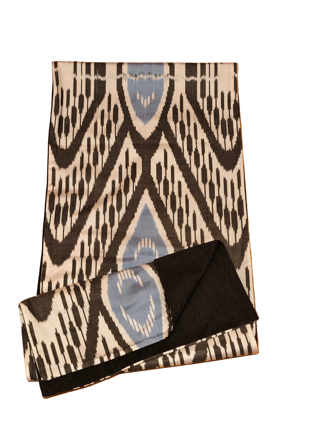 Steele Blue, Black, and White Ikat Stole with Black Denim