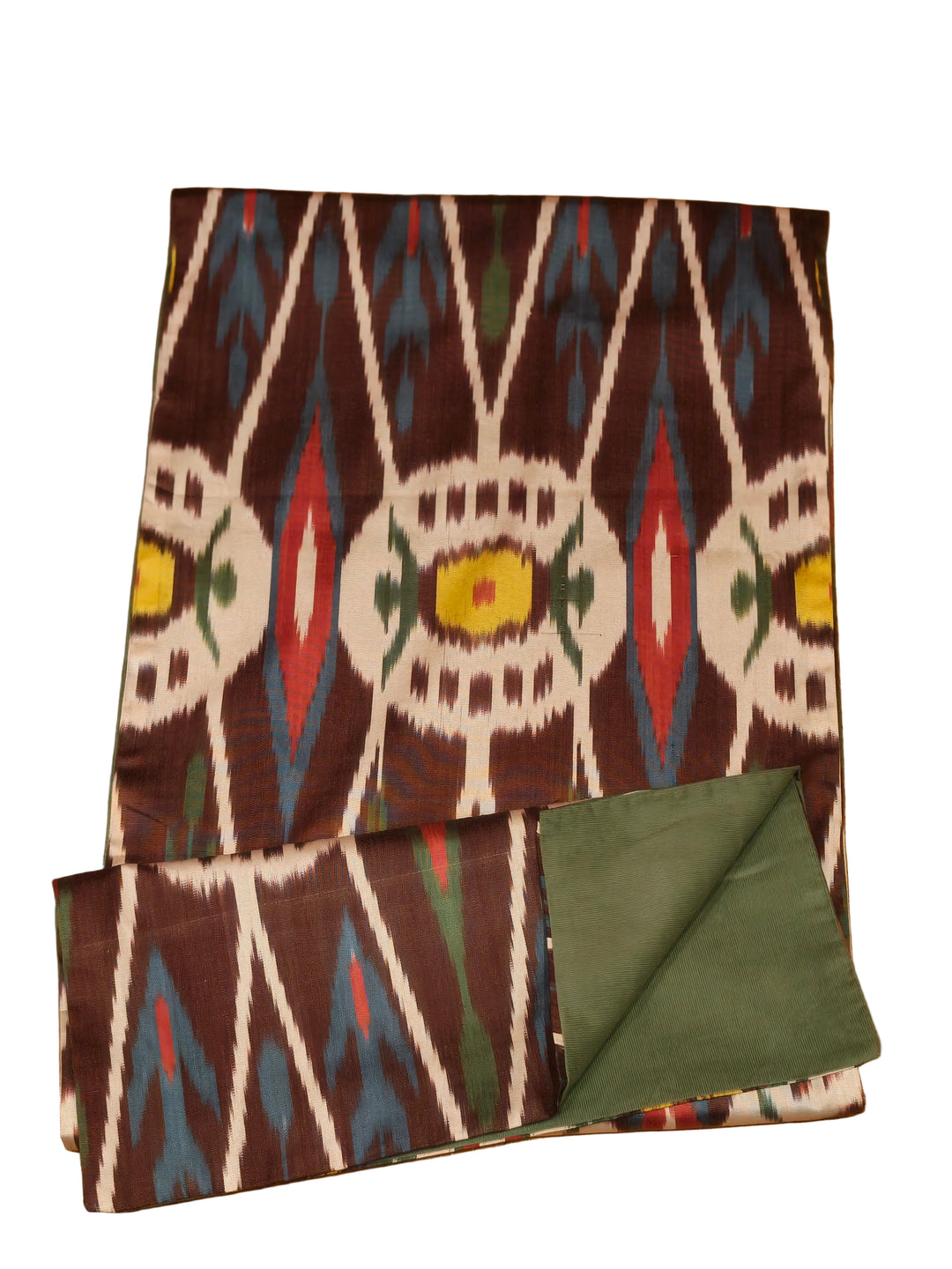 Espresso, Indigo, Buttercup and Moss Ikat Stole with Moss Corduroy