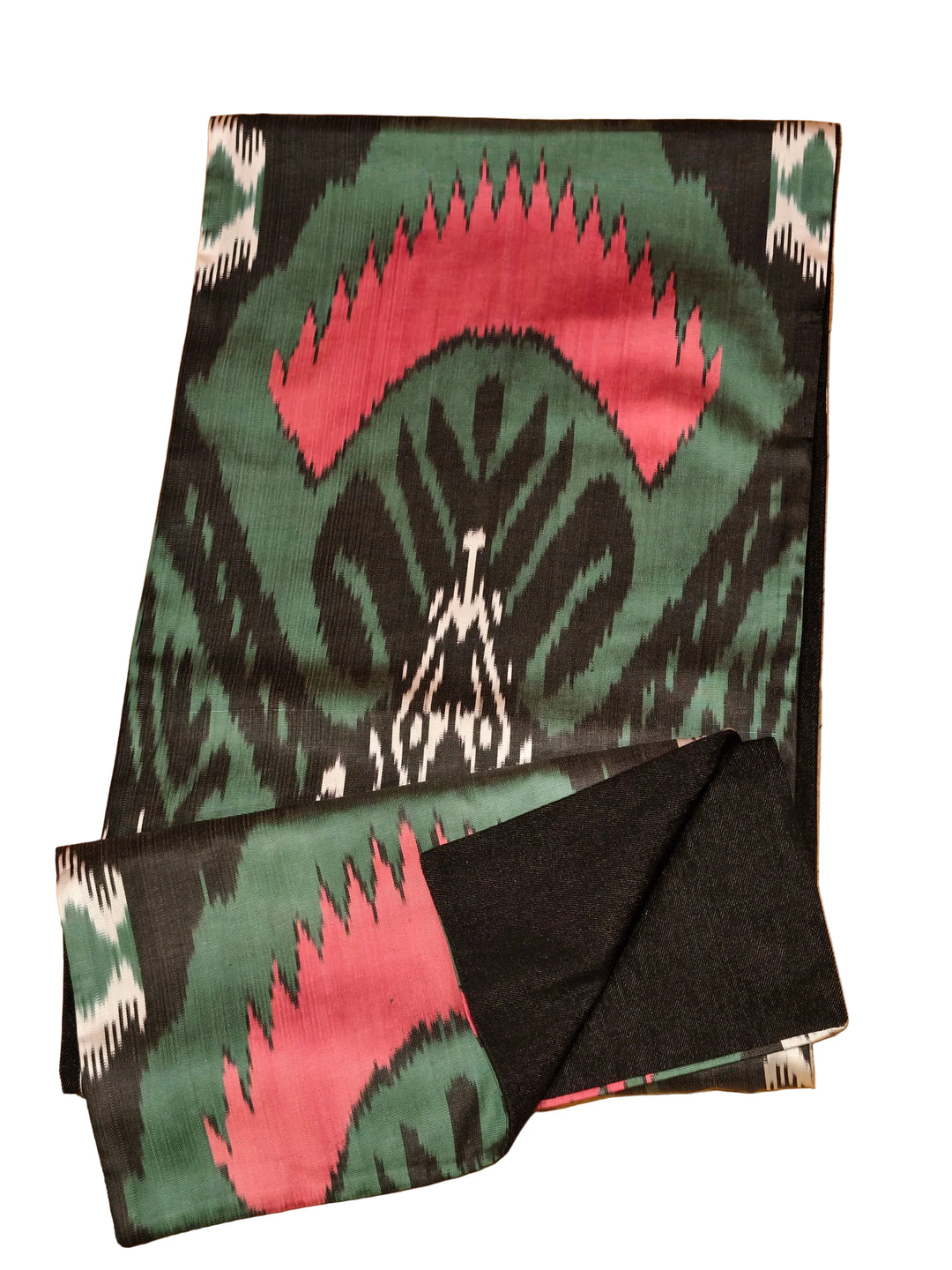 Hunter Green, Black, Crimson, and Ivory Ikat Stole with Black Denim