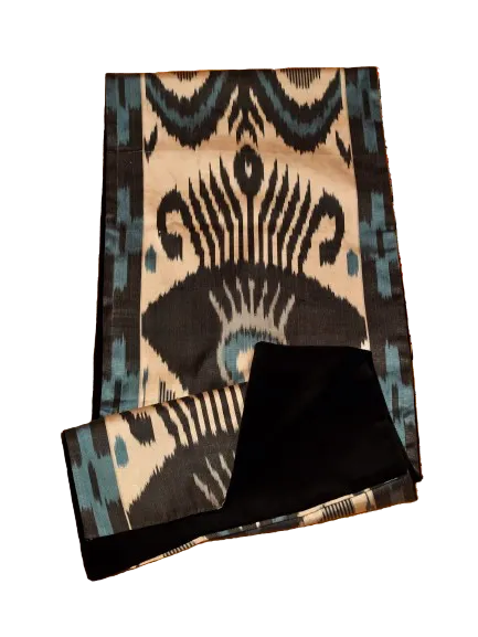 Champagne, Midnight Blue, and Black Ikat Stole with Black Velvet