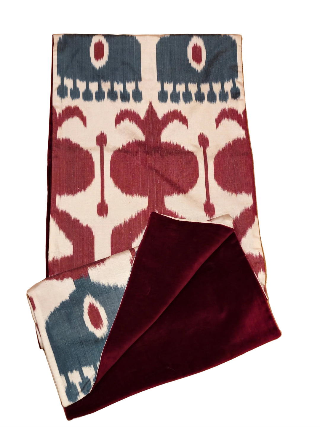 Crimson, Indigo and Ivory Ikat Stole with Crimson Velvet